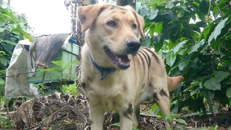 Он нарисовал чёрные полосы на шерсти своего золотистого лабрадора по кличке Бульбуль. Собака стала похожа на тигра, и обезьяны, видя животное издалека, перестали приближаться к ферме.