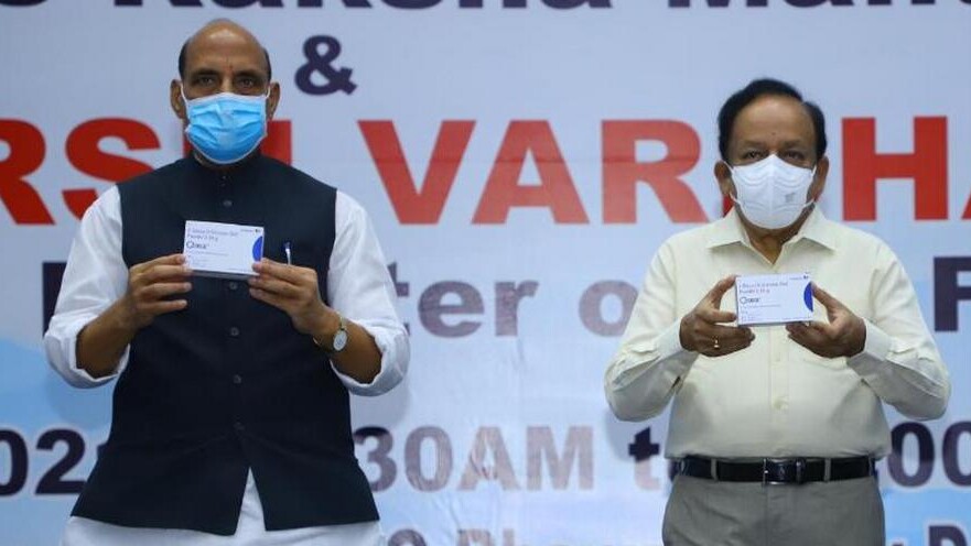 Первую партию препарата 2-DG министр обороны Индии Раджнатх Сингх передал министру здравоохранения Харшу Вардхану в столице страны Нью-Дели.
