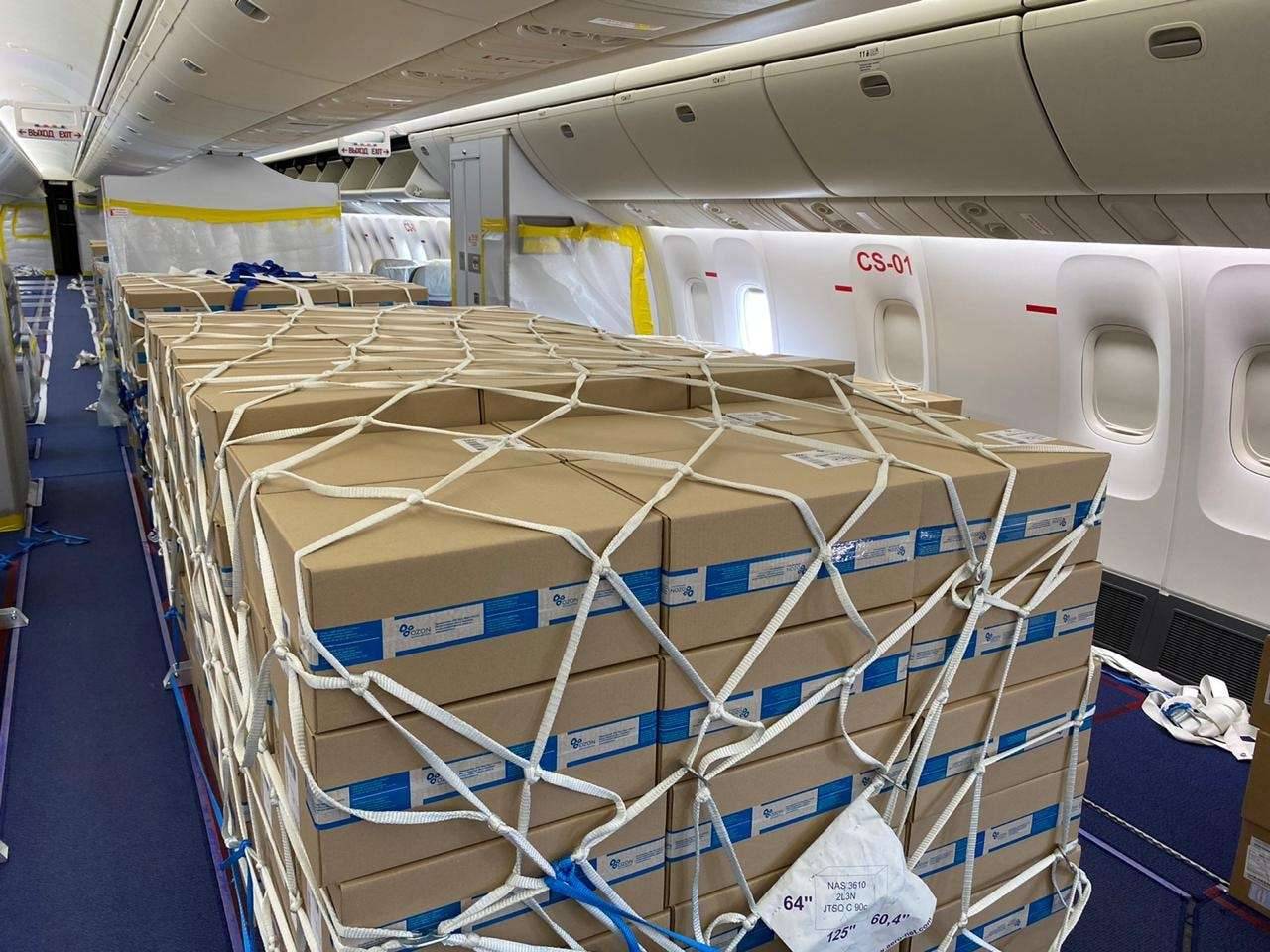 В Казахстан прибыл второй борт с лекарствами для лечения коронавирусной инфекции и пневмонии из Москвы.