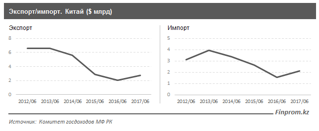 В целом за полгода товарооборот Казахстана с Китаем вырос на 33%. Сальдо товарооборота остаётся положительным – 0,7 млрд долларов.