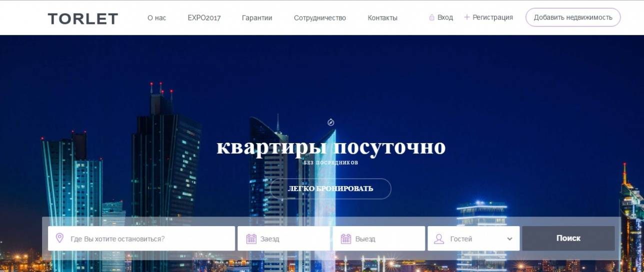 В Казахстане в преддверии ЭКСПО-2017 заработал новый сайт объявлений о посуточной аренде квартир в Астане torlet.com, синхронизированный с системами booking.com и Airbnb. Сайт отличается тем, что все публикуемые на нём объявления будут проходить тщательную проверку на фейковость, сообщает официальный сайт акимата Астаны.