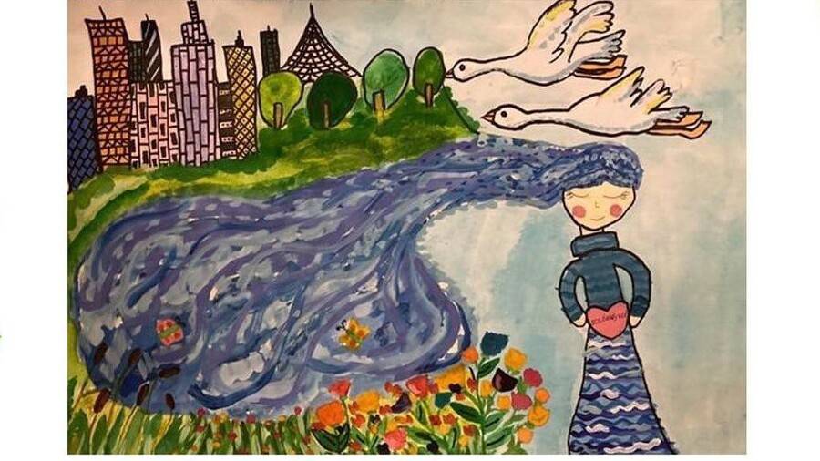 На выставке юные художники и защитники Малого Талдыколя представляют, как они видят доброе соседство экосистемы степных озёр с городской средой.