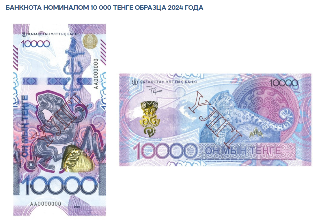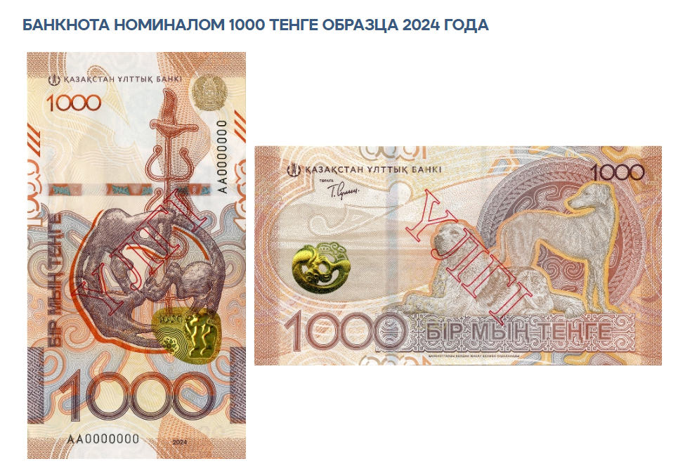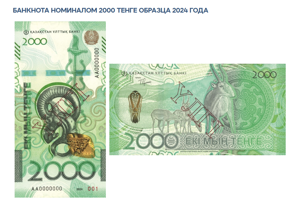 До конца текущего года планируется ввести в обращение новые банкноты в 500 тенге, в следующем году – 20 000 тенге. Дизайн нового образца продолжает серию "Сакский стиль", но приобретает более яркую цветовую гамму. Банкноты выполнены в серо-голубых, бирюзовых и пурпурных тонах. Лицевую сторону украшают животные и птицы – представители уникальной фауны Казахстана.