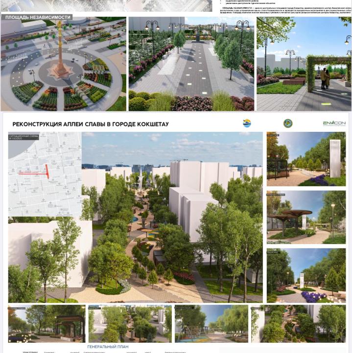 Кроме того запланировано строительство фонтанов, беседок, фуд-кортов, обустройство стритбольной площадки, установка новых систем освещения, замена брусчатки, создание современных систем полива и водоотведения. Реализацией проекта занимается архитектурно-ландшафтная компания – ТОО "Envicon" – под руководством архитектора Романа Шнайдермана.