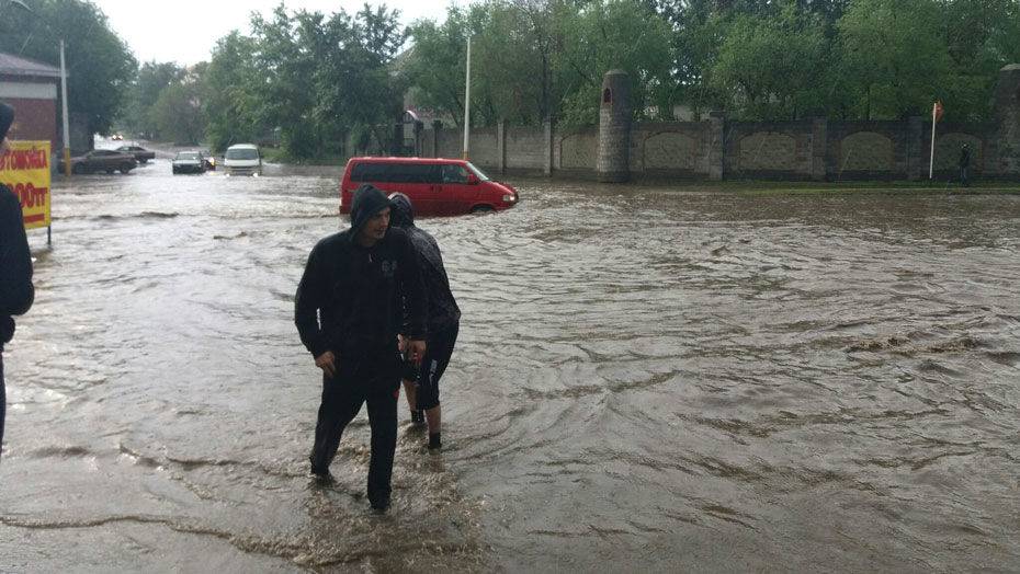 В Костанае улицы превратились в реки после прошедшего вечером 8 июня дождя с градом, сообщает Alau.kz.