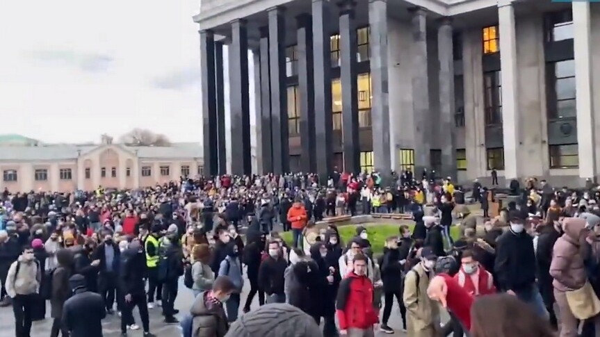 В Екатеринбурге на несанкционированную акцию в поддержку Алексея Навального, по данным министерства общественной безопасности Свердловской области, вышли около пяти тысяч человек. Местный штаб Навального сообщил о 13 тысячах участников. Сотрудники полиции задержали координатора штаба в Екатеринбурге Алексея Гресько и правозащитника Сергея Зыкова. Ранее в квартирах сотрудников штаба прошли обыски.