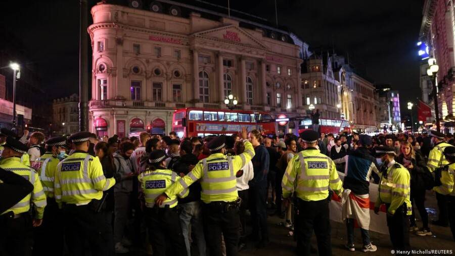 В Лондоне полиция задержала 49 фанатов у стадиона "Уэмбли", где Италия победила Англию в финале Евро-2020, сообщает DW. Во время задержаний пострадали около 20 полицейских.