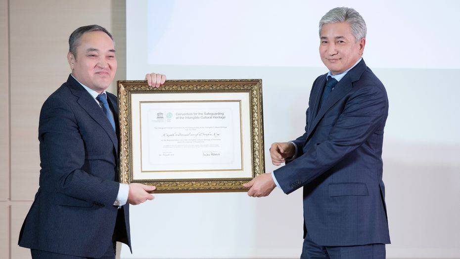 "Неслучайно, что эта экспозиция открывается в сердце нашей Родины – в столице Астане, в Национальном музее – главном храме истории и культуры страны. Поэтому хочу официально вручить сертификаты ЮНЕСКО о включении трех уникальных духовно-культурных ценностей нашего народа – юрта, айтыс и кюй в репрезентативный список человечества на хранение Национальному музею Республики Казахстан", – отметил Тасмагамбетов.