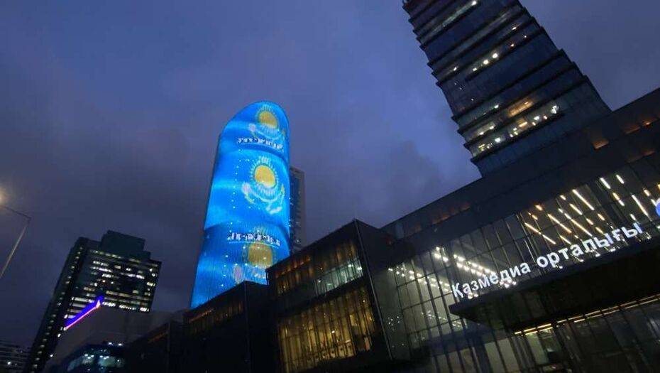 Казахстанский флаг появился на LED-экране здания в 18.30 по времени Нур-Султана.