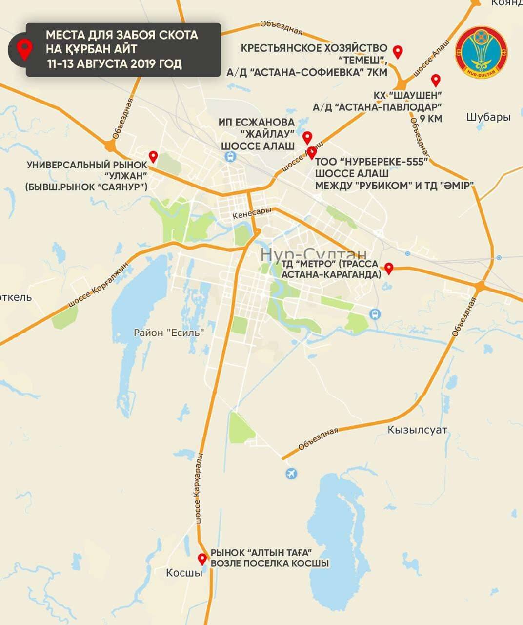В Нур-Султане определили места для жертвоприношений во время Курбан-айта, с 11 по 13 августа, сообщает официальный сайт акимата города.