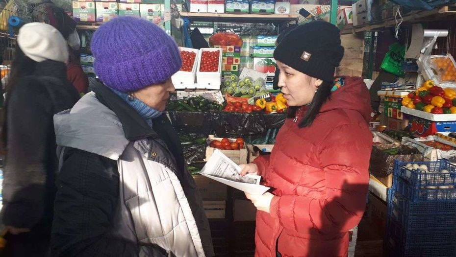 Гульмира Кузембаева, руководитель отдела санитарно-гигиенического надзора за пищевыми объектами департамента охраны общественного здоровья Карагандинской области, лично рассказывала продавцам о правилах мытья рук, а покупателям и журналистам – о том, что не рекомендуется покупать продукты, продающиеся на земле или хранящиеся в неправильных условиях.