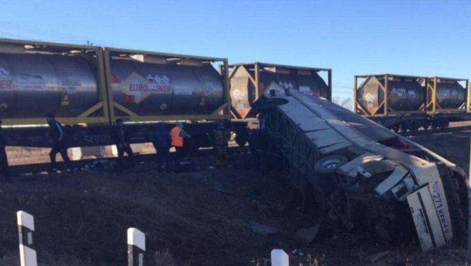 Пассажирский автобус сообщением Саратов – Уральск столкнулся с грузовым составом. Двое казахстанцев пострадали при столкновении автобуса с поездом в России. ЧП произошло на нерегулируемом железнодорожном переезде вблизи границы РФ и Казахстана.
