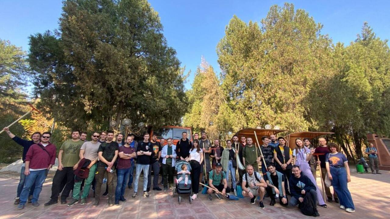 В канун Дня Республики, бежавшие от мобилизации россияне и те, кто оказался здесь по другим причинам, а это всего около 40 человек, взяли в руки метлы, грабли, лопаты и организовали массовый субботник в Дендропарке.