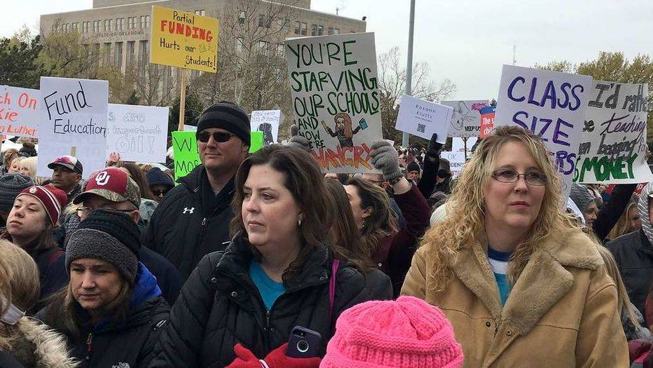 Представители профсоюза учителей Оклахомы заявили, что из-за недостаточного финансирования некоторые школы перешли на четырёхдневную неделю, а школьники вынуждены учиться по учебникам 20-летней давности.