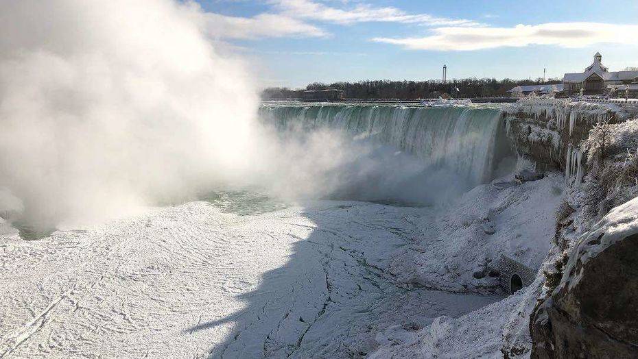 Во время зимнего шторма на северо-востоке США стало так холодного, что водопад замёрз в некоторых местах. Температура воздуха опустилась до 20 градусов мороза.