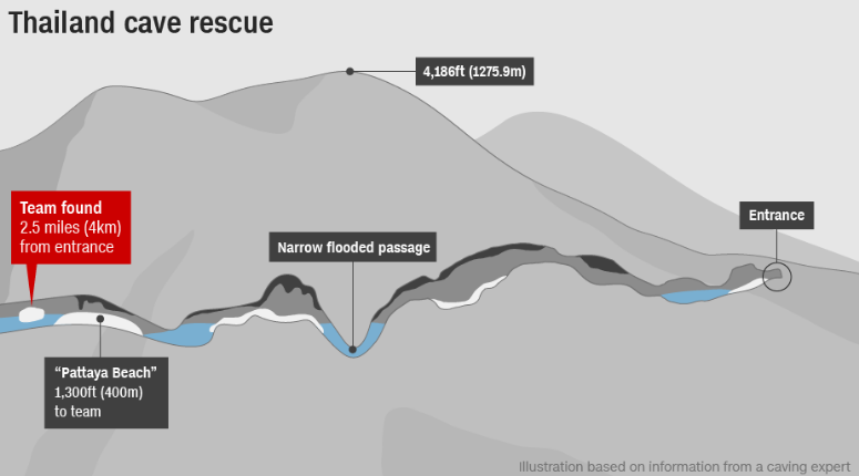 Дети остаются в пещере уже две недели. 23 июня группа футболистов из 12 мальчиков в возрасте от 11 до 16 лет и их тренер решили посетить горный парк. Они забрались в пещеру, но начались ливни, затопившие вход и буквально замуровавшие группу.