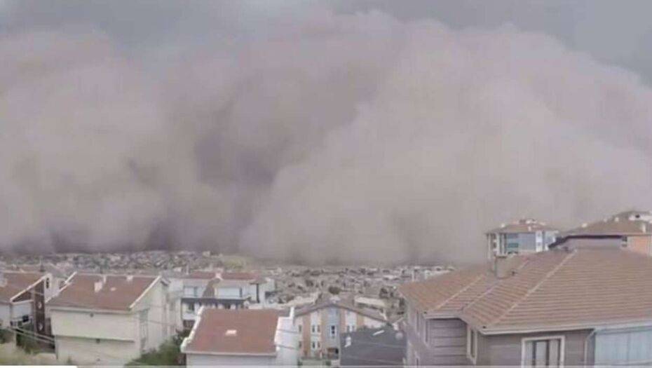 Непогода в провинции бушует несколько дней. Песчаная буря накрыла город Полатлы.