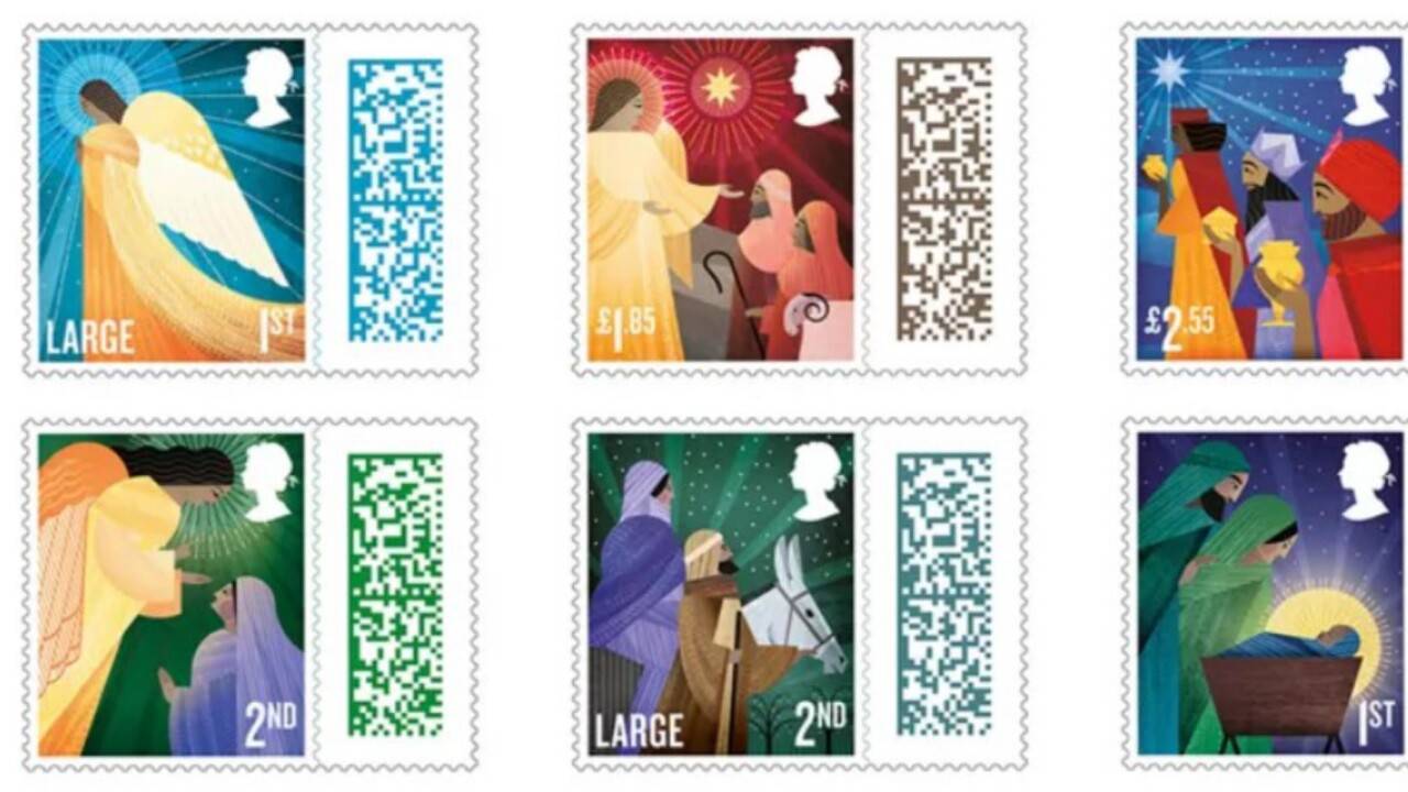 Набор состоит из шести марок с евангельскими сценами Рождества, исполненными в стиле ар-деко. К каждой марке прилагается и QR-код, по которому можно открыть праздничный выпуск мультфильма "Барашек Шон" (Shaun the Sheep).