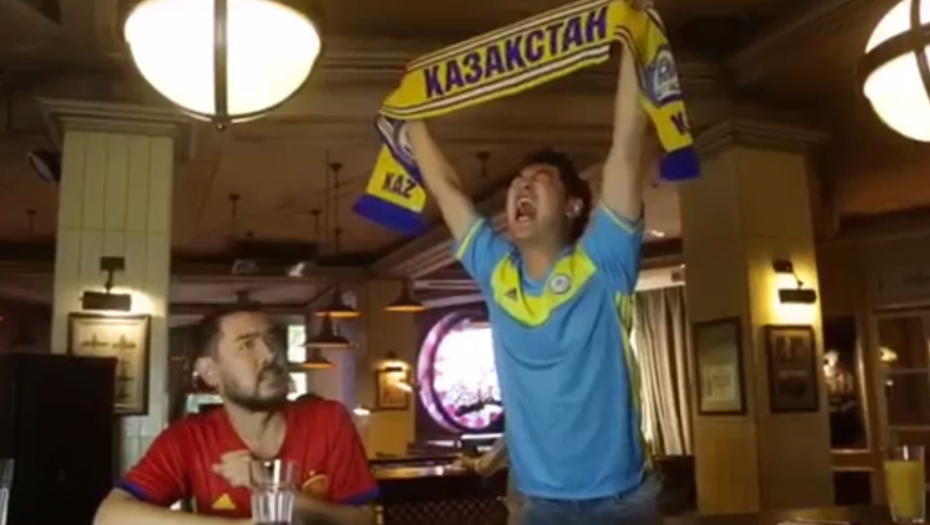 Известные вайнеры стали героями видео, в котором один болельщик в форме казахстанских цветов упрекает другого, сидящего в испанской форме, в том, что он болеет не за отечественных игроков.