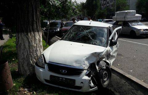 Больше всего пострадал автомобиль "Лада" - от удара его перебросило через арык, где он "встретился" с деревом.