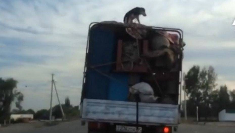 Трогательное видео в группе ZTB.KZ о том, как на тюках с мебелью и всяческим скарбом, едет собака, задело пользователей соцсетей. Снимающий эту сцену на видео следует за машиной и отмечает, что происходит это в Талдыкоргане.