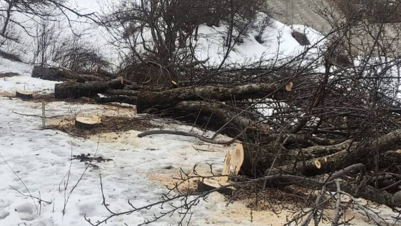 Ранее стало известно, что в предгорьях Алматы (микрорайон Нурлытау, 46) незаконно вырубили яблоневый сад. Местные жители сообщали, что неизвестные уничтожили не менее 25 яблонь. Специалисты управления экологии и окружающей среды выехали на место инцидента и обнаружили, что на самом деле срубленных плодовых деревьев оказалось ещё больше.
