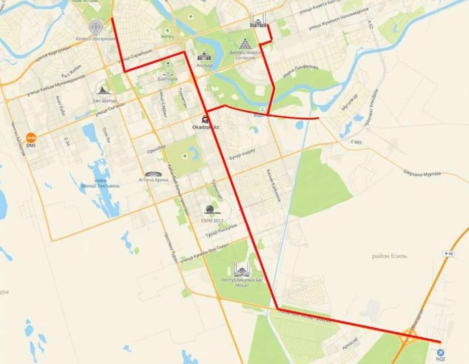 - по проспекту Кабанбай батыра – от международного аэропорта Нурсултан Назарбаев до проспекта Мангилик Ел;