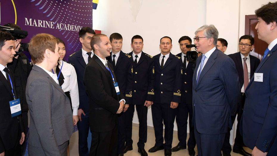 Глава государства осмотрел судоводительские, судомеханические, штурманские тренажёрные классы, учебные кабинеты Морской академии, созданной в 2018 году по итогам Пятого каспийского саммита при Каспийском государственном университете технологий и инжиниринга.