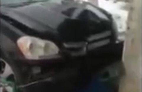 Mercedes модели GL-450 оказалcя "припаркован" у самого подъезда многоквартирного дома. Человек, сидевший за рулём, снёс урну и врезался в бетонное ограждение. У внедорожника повреждена передняя часть, сломан бампер и двигатель.