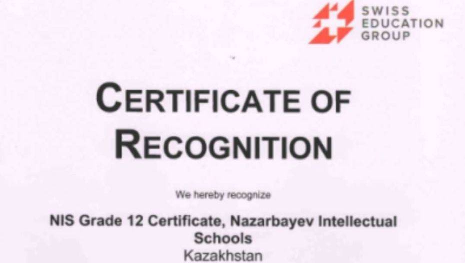 Swiss Education Group (SEG) признала сертификат выпускника 12 класса Назарбаев Интеллектуальной школы (НИШ) на переговорах казахстанской и швейцарской сторон в головном офисе SEG, сообщается на сайте НИШ.