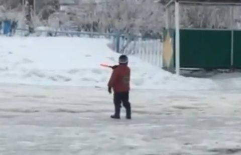 В посёлке Маржанбулак Актюбинской области маленький регулировщик покорил водителей уверенными движениями, в которых чувствуется и некоторая небрежность, обычно свойственная многоопытным профи.