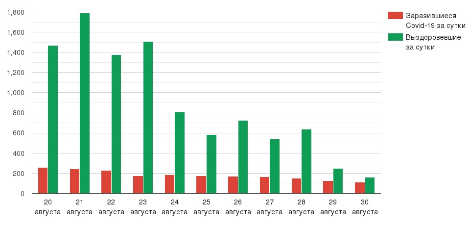 Всего коронавирусом в стране заразились 105 795 человек (лабораторно подтверждённые случаи). По данным на 29 августа, скончалось 1572 человека (статистику по смертности в разрезе регионов Минздрав предоставляет раз в неделю, она представлена в таблице).