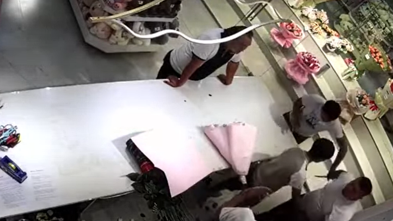 В Казнете появились резонансные видео из цветочного магазина в Шымкенте. На одном посетитель угрожает продавцу его же ножницами, а на другом забирает букет без оплаты, предварительно устроив дебош.
