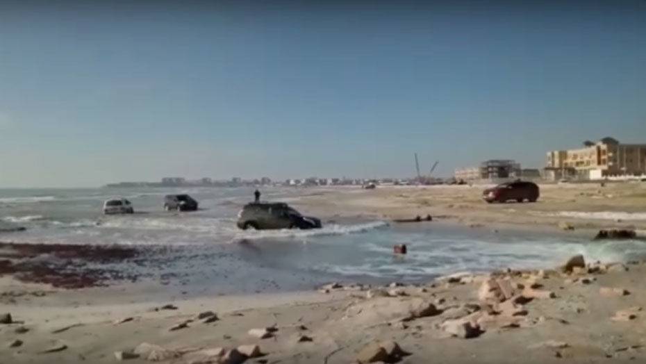 Видеозапись с внедорожниками, катающимися в море, появилась 20 февраля. Автор видеоролика предположил, что таким необычным образом автолюбители решили сэкономить на мойке.