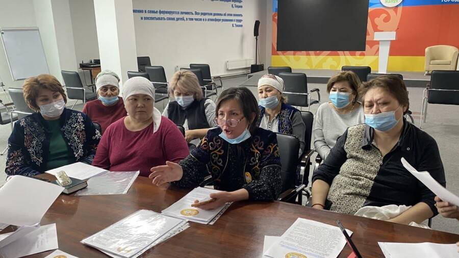 Группа "Движение женщин Казахстана за снижение пенсионного возраста женщин 58 лет" встретилась с депутатами мажилиса Закиевой Динарой и маслихата Салтанат Дженалаевой. Участницы движения требуют вернуть возможность женщинам выходить на пенсию в 58 лет.