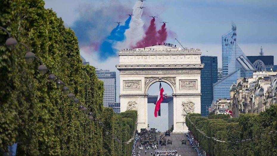 Митингующие за несколько минут до начала военного парада вышли на улицы Парижа. Демонстранты кричали, что требуют отставки президента Эммануэля Макрона.