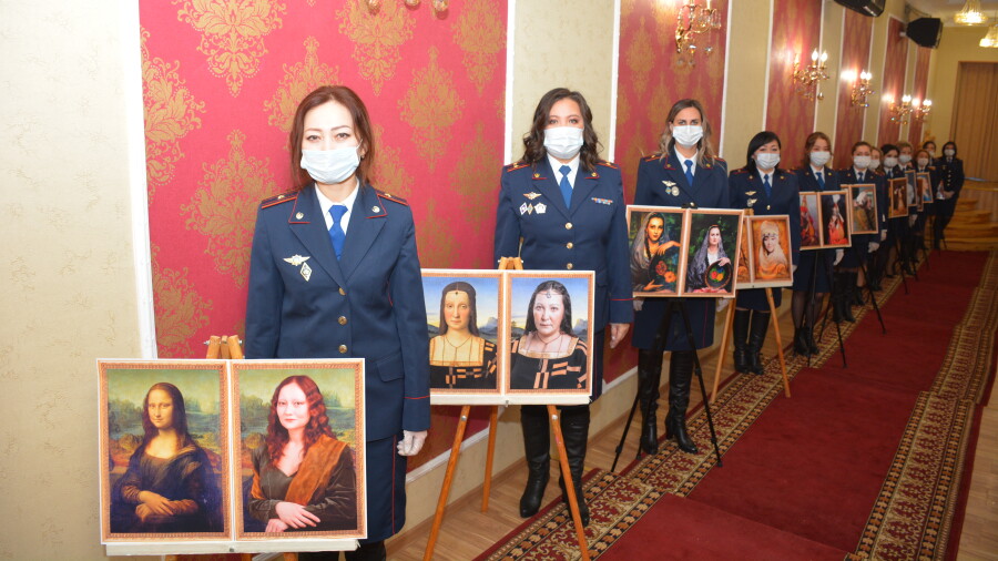 Старший инспектор ювенальной полиции Еркегуль Басыбаева сфотографировалась в образе Джоконды. Старший инспектор управления административной полиции Жанна Умбаева выбрала "Портрет Элизабет Гонзаго".