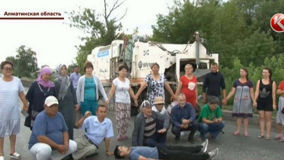 Жители села Бактыбай Алматинской области помешали строительным работам на республиканской трассе Алматы – Талдыкорган. Люди взялись за руки и даже легли на дорогу, чтобы остановить тяжёлую технику, сообщает телеканал КТК.