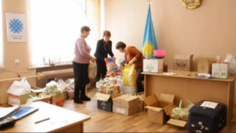 Склад в посёлке Шахан, куда привозят гуманитарную помощь со всей страны, уже переполнен. Пострадавшим жильцам рухнувшего дома по третьему разу раздают крупы и мясо, передаёт телеканал КТК.