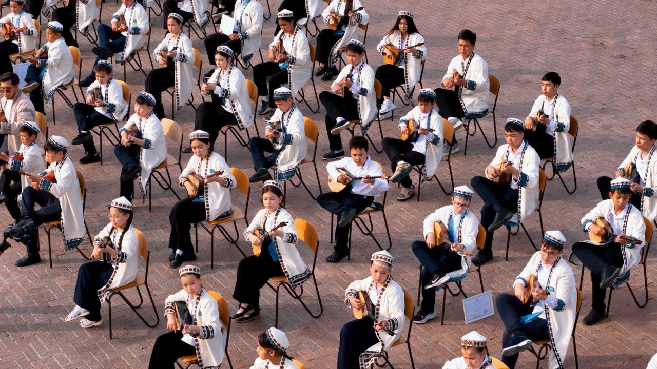 В рамках флешмоба юные артисты в едином хоре исполнили патриотические песни "Көк тудың желбірегені" и "Отан қымбат", наполнив атмосферу торжественностью и гордостью. Однако главным моментом стал совместный показ домбрового мастерства – школьники исполнили знаменитые кюи "Ерке Сылқым" и "Балбырауын", подарив зрителям настоящее эстетическое наслаждение.