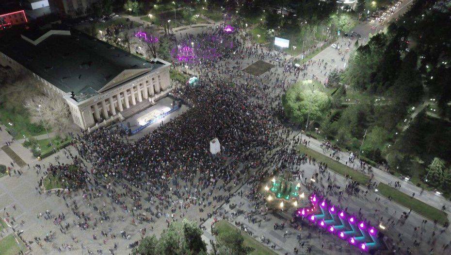 На празднике все семь фонтанов включились одновременно, сопровождаясь ярким разноцветным фейерверком. Поздравить и подарить талдыкорганцам хорошее настроение приехали звезды современной эстрады, любимчики молодёжи Райм & Артур.