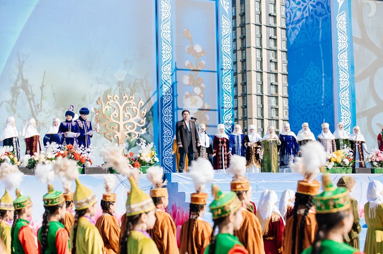 Праздничное мероприятие продолжилось выступлением группы "Музарт" и местных артистов. Актёры театра представили постановку, посвящённую древней традиции Көрісу. Со сцены прозвучали народные песни в исполнении хора "Әжелер", наполнившие атмосферу праздника теплом и особым колоритом. В ходе представления артисты спустились в зрительный зал и провели традиционный обряд Шашу. В завершение аксакалы дали бата всем присутствующим.