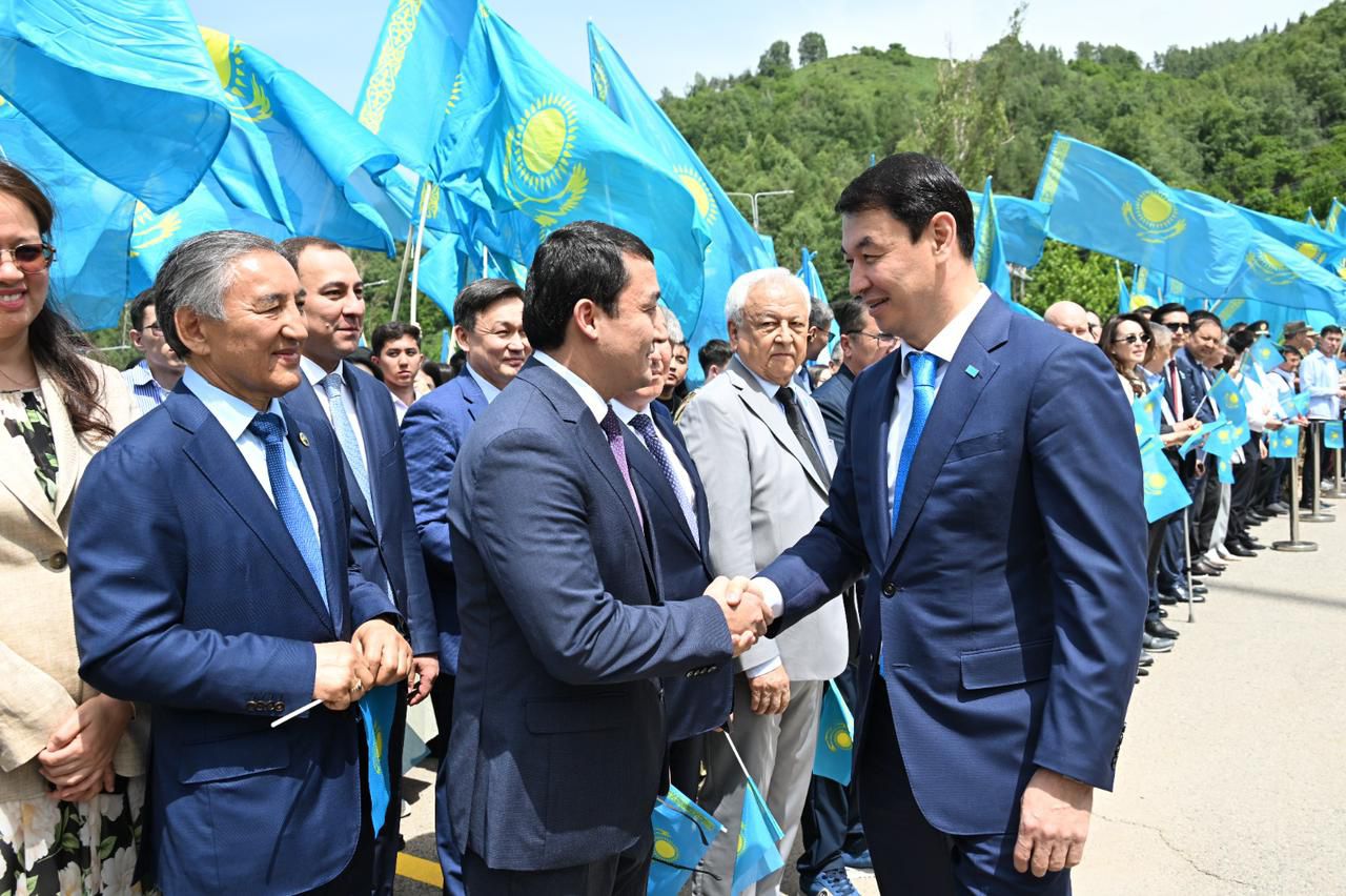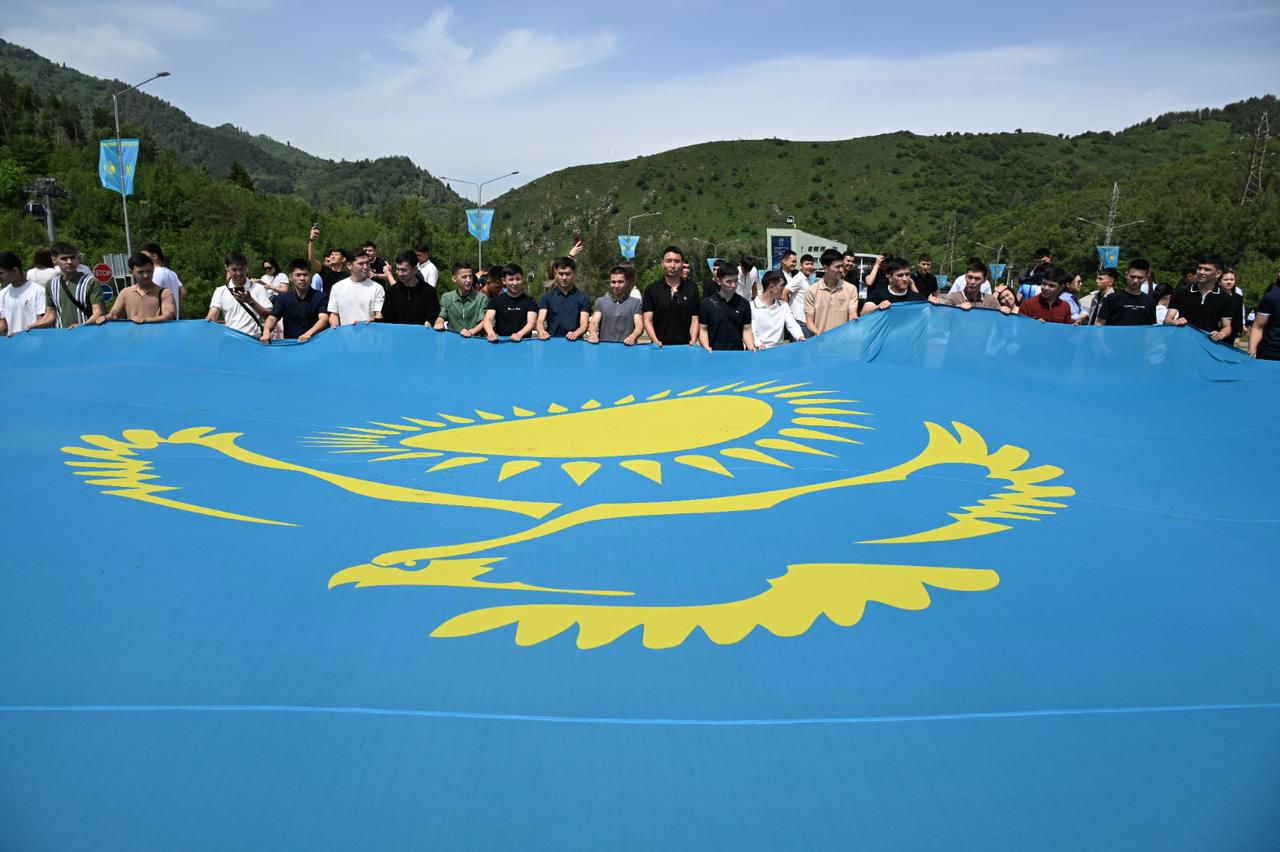 Патриотическое мероприятие состоялось в высокогорном спортивном комплексе "Медеу". В церемонии приняли участие аким Алматы Дархан Сатыбалды, деятели культуры и спорта, представители общественности, АНК и молодёжных организаций.