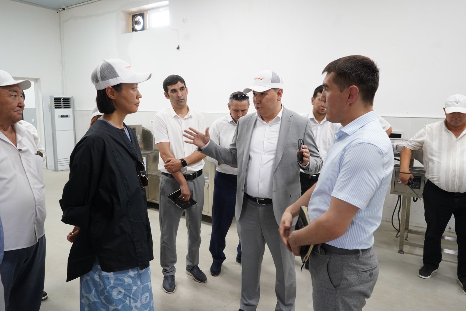Далее была презентована система работы цеха по переработке фруктов, произрастающих в саду. Проект реализуется по инициативе учёных университета. Собранные плоды обрабатываются современным методом, из них получают экологически чистые сухофрукты. З. Сулейменова и гости положительно оценили качество продукции.
