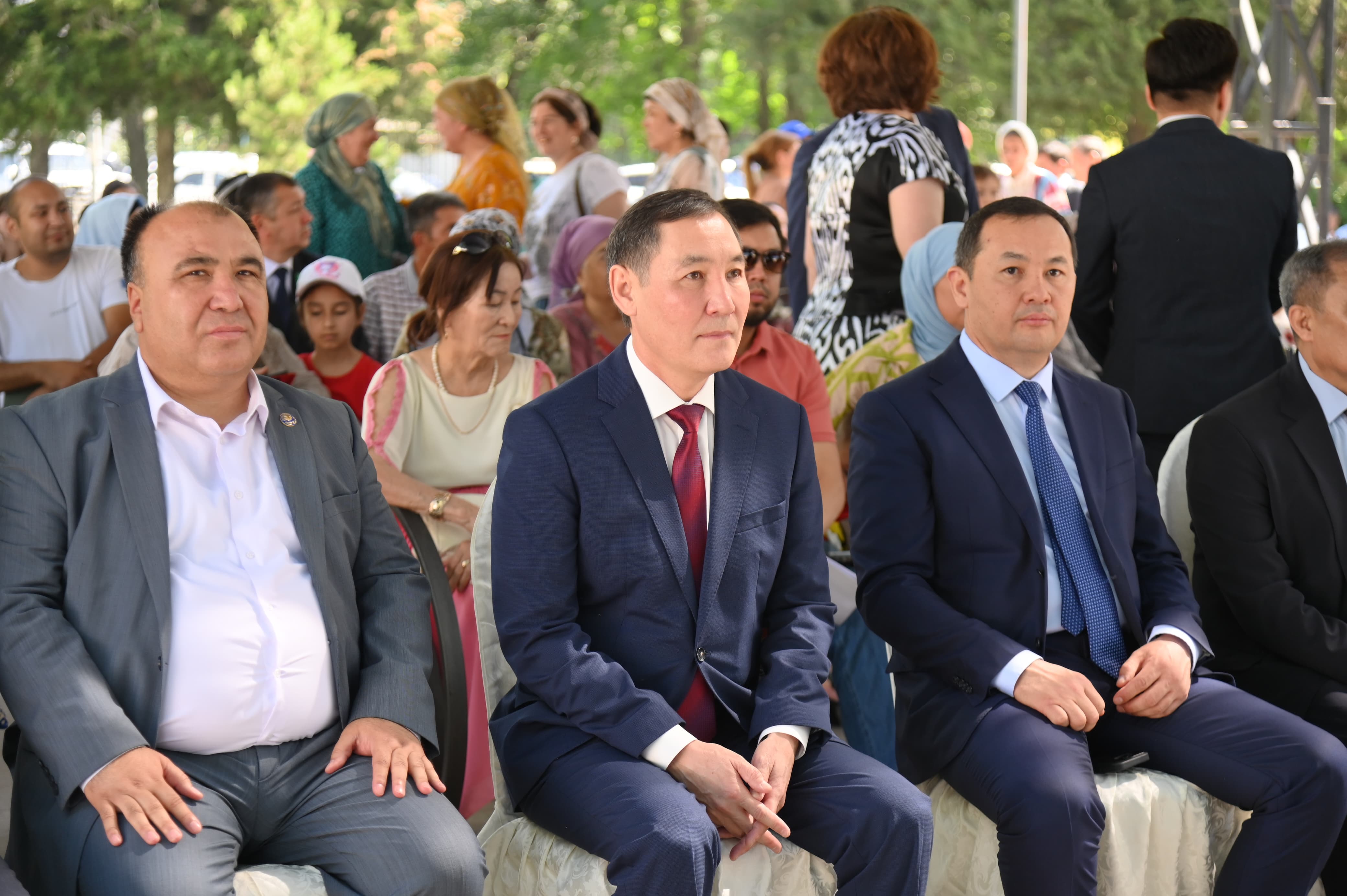В праздничном мероприятии приняли участие заместитель Председателя Ассамблеи народа Казахстана – заведующий Секретариатом АНК Администрации Президента Марат Азильханов, заместитель акима города Шымкент Сарсен Куранбек, депутаты Сената Парламента Алишер Сатвалдиев и Галиаскар Сарыбаев, ветеран органов внутренних дел Молдияр Оразалиев, председатель Совета медиации при АНК, член Национального курултая Шерзод Пулатов, а также представители общественного фонда "Ватандошлар" из Узбекистана.