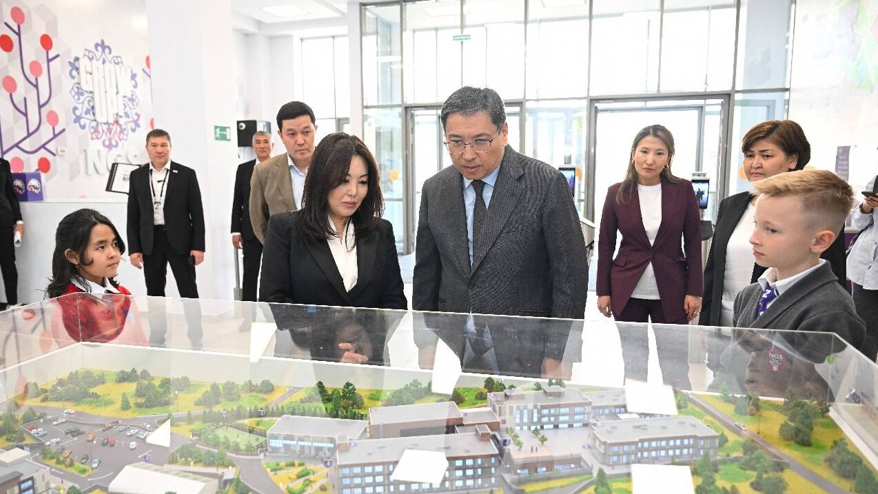 Аким города осмотрел коворкинг-центр, актовый зал, учебные кабинеты, класс робототехники, столовую и библиотеку, ознакомился с работой лаборатории, специализированных кабинетов химии, физики, математики, а также спортивного и тренажёрного залов, бассейна и артплощадки.
