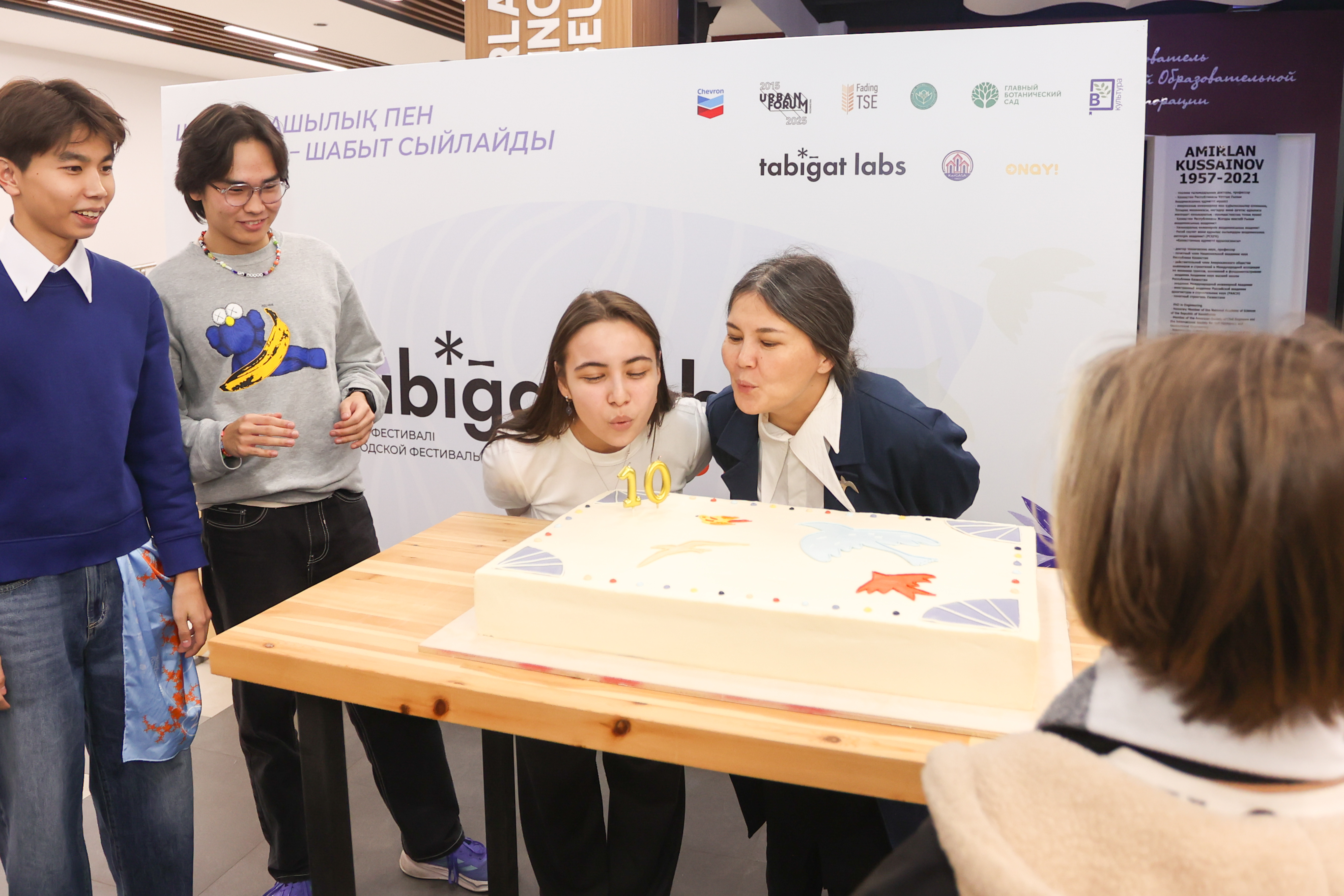 Во время перерыва между лекциями и мастер-классами состоялось торжественное разрезание праздничного торта в честь 10-летия общественного фонда Urban Forum Kazakhstan – первой независимой организации в стране, специализирующейся на урбанистике. Все эти годы фонд строит сеть партнёров в Казахстане и за его пределами, проводит исследования, реализует проекты и объединяет сообщества, в том числе в рамках инициативы Tabiğat Labs.