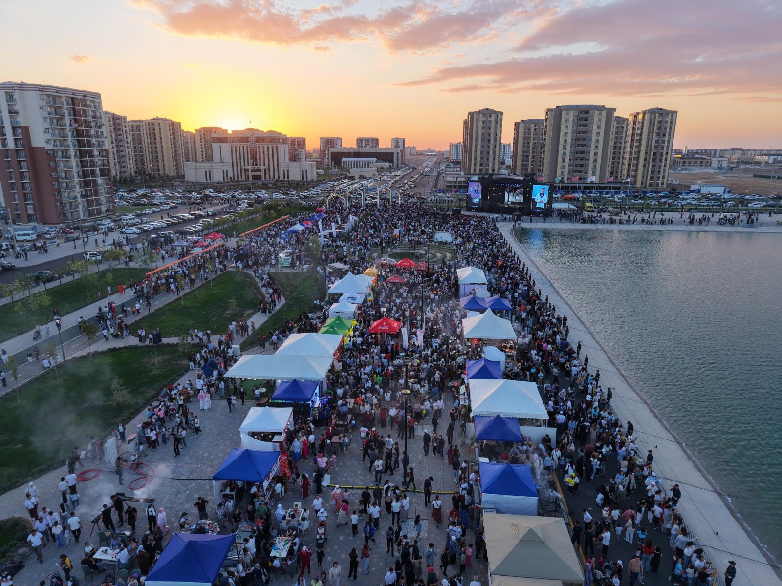 Кроме того, в областном центре царила праздничная атмосфера, танцоры, аниматоры и цирковые артисты гуляли по комплексу, развлекая посетителей. Были организованы гастрономическая ярмарка национальных блюд Taiqazan, выставка ремесленников, шоу воздушных шаров, креативные фотозоны, около 10 мастер-классов, игровые зоны, а также водные спортивные игры и представления, флайборд-шоу, лазерное и фонтанное шоу, праздничный салют.