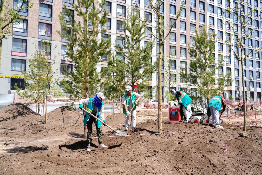 Новый район столицы преображается из года в год. Так, в 2025 году в районе Байконыр высадили более 8 тысяч деревьев и обустроили 15,5 тысячи цветников. Дополнительно появилось 10 700 декоративно-цветущих кустарников и более 2200 погонных метров живой изгороди.