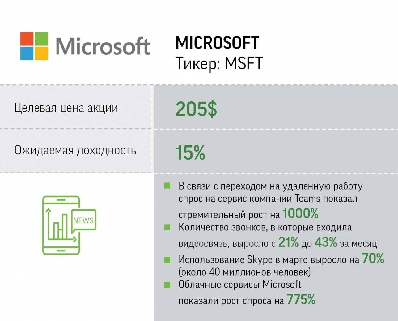 Один из драйверов будущего роста в том, что до вспышки вируса компания предоставила сильный прогноз на следующий квартал, что говорит о продолжении роста ключевых бизнес-сегментов. В III квартале компания прогнозирует прибыль в размере $34,1- 34,9 млрд (консенсус – $34,15 млрд), включая прогноз роста сегмента Intelligent Cloud в диапазоне $11,85-$12,05 млрд.